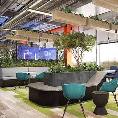 Teaching and collaboration zones for all subject areas, a dedicated presentation space, a downtime reflection quiet area known as ‘Recharge’ and a faith room. This area of campus also houses the academic staff and student support teams, as well as a number of bookable meeting spaces for all. Fully integrated virtual conferencing is embedded throughout, and there are private pods for all to use for work or online meetings.