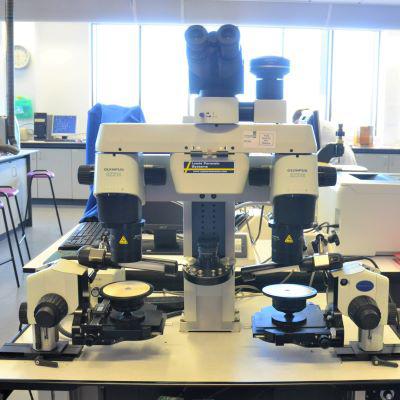 - Two high power microscopes equipped with video cameras and warming stages to allow measurement of the sample refractive index.