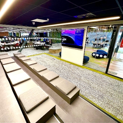 Teaching and collaboration zones for all subject areas, a dedicated presentation space, a downtime reflection quiet area known as ‘Recharge’ and a faith room. This area of campus also houses the academic staff and student support teams, as well as a number of bookable meeting spaces for all. Fully integrated virtual conferencing is embedded throughout, and there are private pods for all to use for work or online meetings.