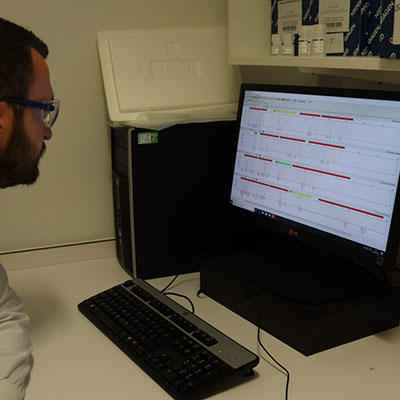 This specialist room provides a clean area for the preparation of molecular reagents to avoid contamination from DNA, RNA, organic material or microorganisms. Fully processed samples are run on the 3500 Genetic Analyser with STR and Sequence data analysis available.