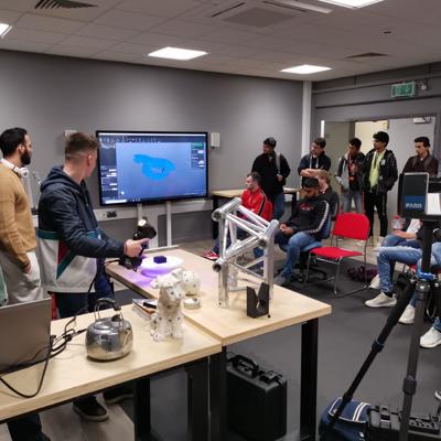 Home About Facilities Technical Visualisation and Simulation Studio Visualisation and Simulation Studio This multi-purpose space facilitates training, research and academic practice related to object digitisation, through the use of laser scanners and close range photogrammetry. The Smart Zone hosts a range of laser and structured light scanners. These enable students to create digital reconstructions of objects as small as a breadcrumb, to entire buildings. While dedicated instructional sessions for each of these scanners and the related software can be booked, our Technical Specialists are likewise available to perform scans for those purely interested in collecting data. View our Technical Instruction video library The Visualisation and Simulation Studio is an open plan space, exclusively available for object digitisation. Whether performed with any of our scanners or through the use of close range photogrammetry, the studio has been purpose built to provide ample space, privacy and flexibility to both students and researchers. Equipment HandySCAN Black Elite MechScan Macro 3D Scanner Faro FOCUS S70 Laser scan of a dinosaur model. Laser scanning a cardigan, demonstrating the power of the HandyScan Black Elite. Digitisation of a cardigan for use in 3D printing. Students get first hand experience with the HandyScan Black Elite. The HandySCAN Black Elite A subject that has been prepared for scanning Scanning in progress The raw data of a completed scan Video Location S116 Mellor Building College Road Stoke-on-Trent ST4 2DE Opening Times Monday to Friday 8am – 6pm, Saturday and Sunday 10am – 4pm, subject to training. Hub Smart Technology Hub