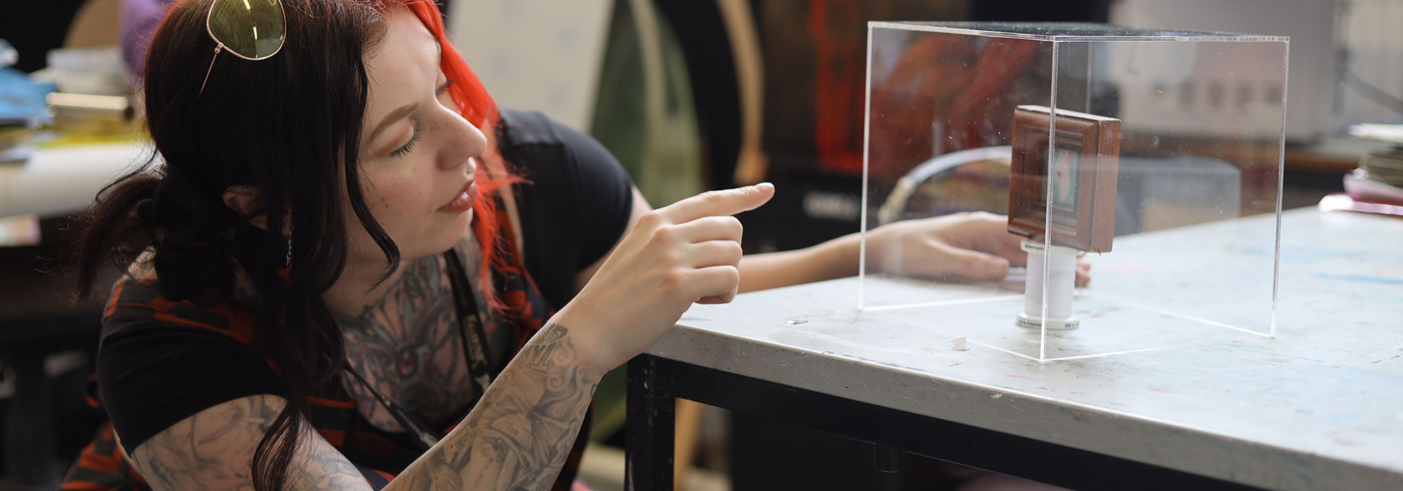 You'll be supported to establish your own practice as an artist; working in our spacious studios, galleries and workshops, exploring your ideas through site specific contexts, professional external projects, and a yearly public exhibition.