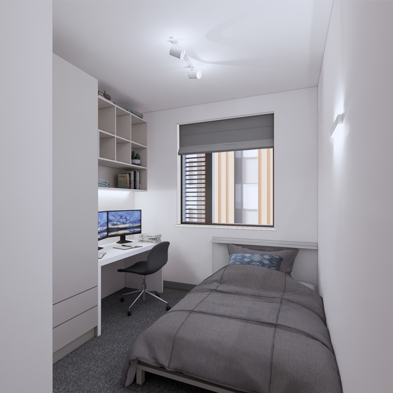Gold Classic (Standard Ensuite Room) Home Student life Accommodation Our accommodation Gold Classic (Standard Ensuite Room) Coming in 2026 For a lively and social student experience, our Gold Classic rooms provide the classic halls atmosphere. You'll share an open-plan kitchen, dining and living area with 8 -12 students where you can connect and make friends. All bedrooms are ensuite with modern furnishings, creating the perfect retreat after a day at university. £192/week £7,488 annually for minimum 42 weeks. Your duration can be extended if required. Bills included All included in the licence fee Private ensuite bathroom With a shared kitchen and lounge for 8-12 residents Imagery is indicative and not literal. Photos are artistic impressions. Ensuite bedroom (artistic impression) Shared kitchen (artistic impression) Shared living space (artistic impression) Student Village (artistic impression) Student Village (artistic impression) Student Village (artistic impression) Student Village (artistic impression) Student Village (artistic impression) What's included? All university managed accommodation is within walking distance of the post room and launderette (pay as you use). Residents also have access to ResLife events, are in close proximity to our on-campus bars and cafes, plus get free membership to our on-campus sports centre. 24 hour security Including on site daytime police officer and SafeZone app Contents insured £10,000 Personal Contents Insurance (T&Cs apply) Free membership At our on campus gym and sports centre Your room Bedframe and mattress (small double) En-suite with shower, toilet, sink and mirror Desk Desk chair Drawers Wardrobe Shelving Pinboard Internet access via ASK4 (T&Cs apply) Shared spaces Fridges Kettle Dining table and chairs Sofas Lounge Dining area Communal laundry facilities Kitchen Oven with hob What's NOT included TV licence - if you plan on watching live TV, or services that require a licence in your bedroom, it is your responsibility to purchase a TV licence. Location Gold Classic rooms are located in our new Student Village at the Leek Road site of our Stoke-on-Trent Campus. Set between our Nature Reserve, and the Nursery and Forest School, the Student Village is a five minute walk to the Leek Road site centre, and a 10 minute walk from College Road. You can also walk into Stoke town centre where you will find supermarkets, a weekly market, shops, bars and restaurants. Stoke-on-Trent Railway Station is also just an eight minute walk away. Disclaimer Rooms are subject to availability. The Student Village is currently under construction. The images shown in the advertising materials are artistic renderings of the room appearance and are for illustrative purposes only. In the unlikely event that your accommodation is not ready on time, you will still be allocated a room in alternative accommodation and will move to your first choice accommodation as soon as it is available. This room will be open for applications in 2026. View all accommodation