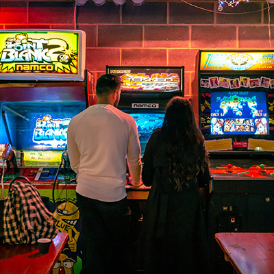 Four Quarters Four Quarters is an arcade bar in East London. It has a selection of video games, as well as a canal-side location with a sun-drenched beer garden and a pizza menu. Read more Find out more: https://fourquarters.bar/