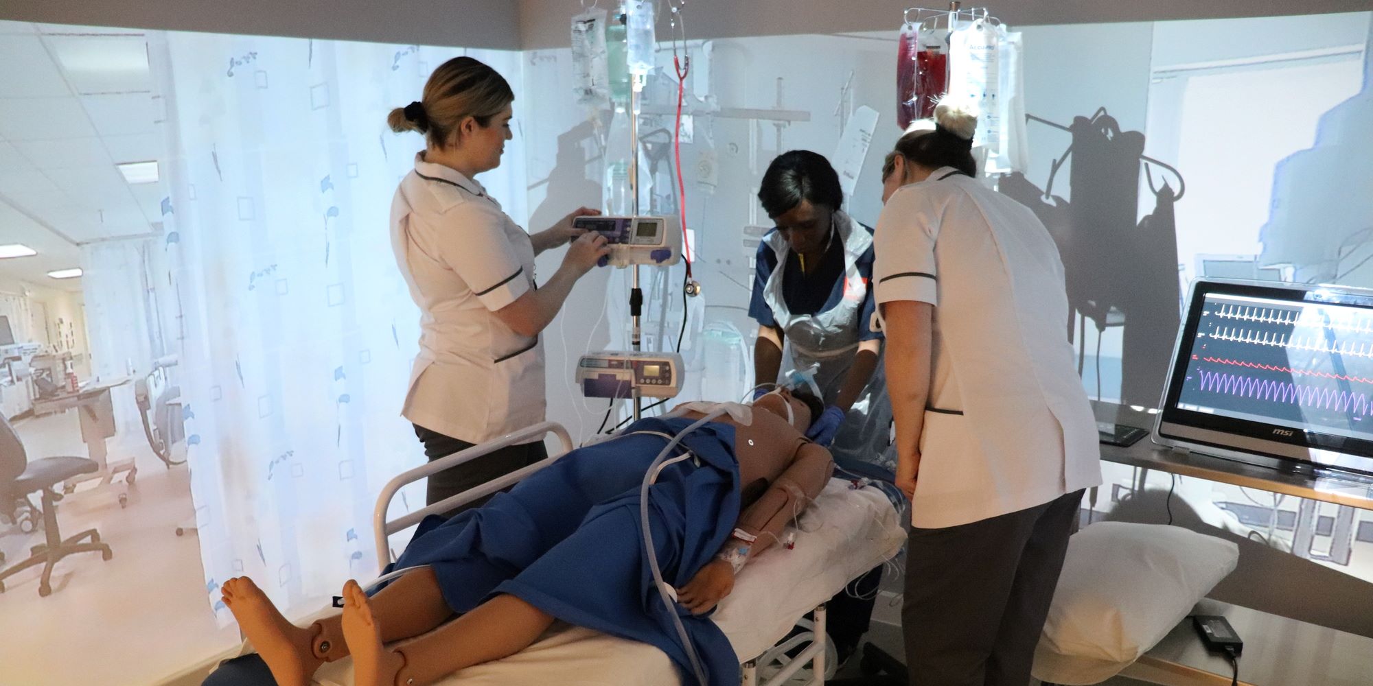 At University of Staffordshire, we have state of the art facilities which help us to recreate the ‘real world’ experiences such as our Centre for Health Innovation, which is a unique, multi-purpose space, and allows us to recreate a vast range of different clinical environments, from community settings, to wards and even operating theatres. We also have access to immersive and virtual reality technologies to allow us to further develop the learning environment for our students enhancing learning.