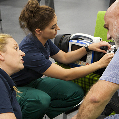 Once you have studied the theory, you will put it into action in our clinical skills labs and through simulated scenarios. You will also apply your skills on an ambulance service placement, where you’ll assess patients, do simple diagnoses and simple drug administration.