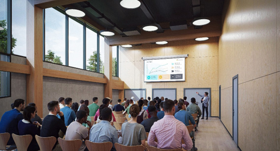 You'll find social spaces, wellbeing activities and support – at the centre of Student Village life. Our net-zero Hub will be open to all students, whether you live on campus or commute. It will be your place, with flexible spaces for events, and comfy seating where you can socialise and relax.