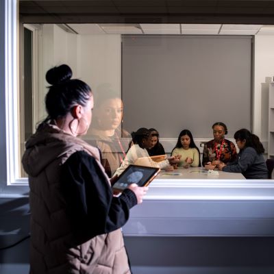 The Counselling Suite consists of a large teaching space and four interconnected cubicles which facilitate one-to-one counselling skills.