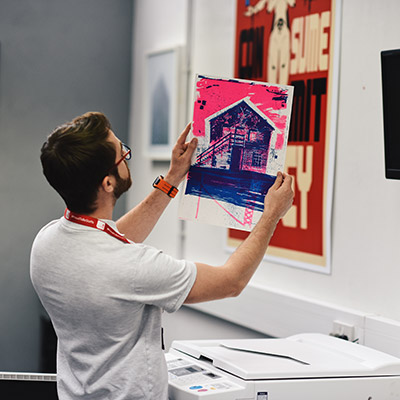 A centralised printing hub offering a wide range of high quality printing including vinyl banners, large format inkjet, riso, ceramic transfers, and fabric printing.