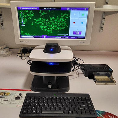 The facility may be used by undergraduates and postgraduates to culture cell lines in vitro in dedicated incubators providing environmental conditions as close to the human or mammalian body as possible. Students may for example investigate the cytotoxity of chemotherapeutic agents and the inhibitory effect of dietary supplements on cancerous cells using proliferation and MTT assays , gene expression using RT- PCR and adipocyte differentiation. The isolation of exosomes may be further studied utilising facilities and equipment in adjoining areas (ultracentrifuge and fluorescent microscope )